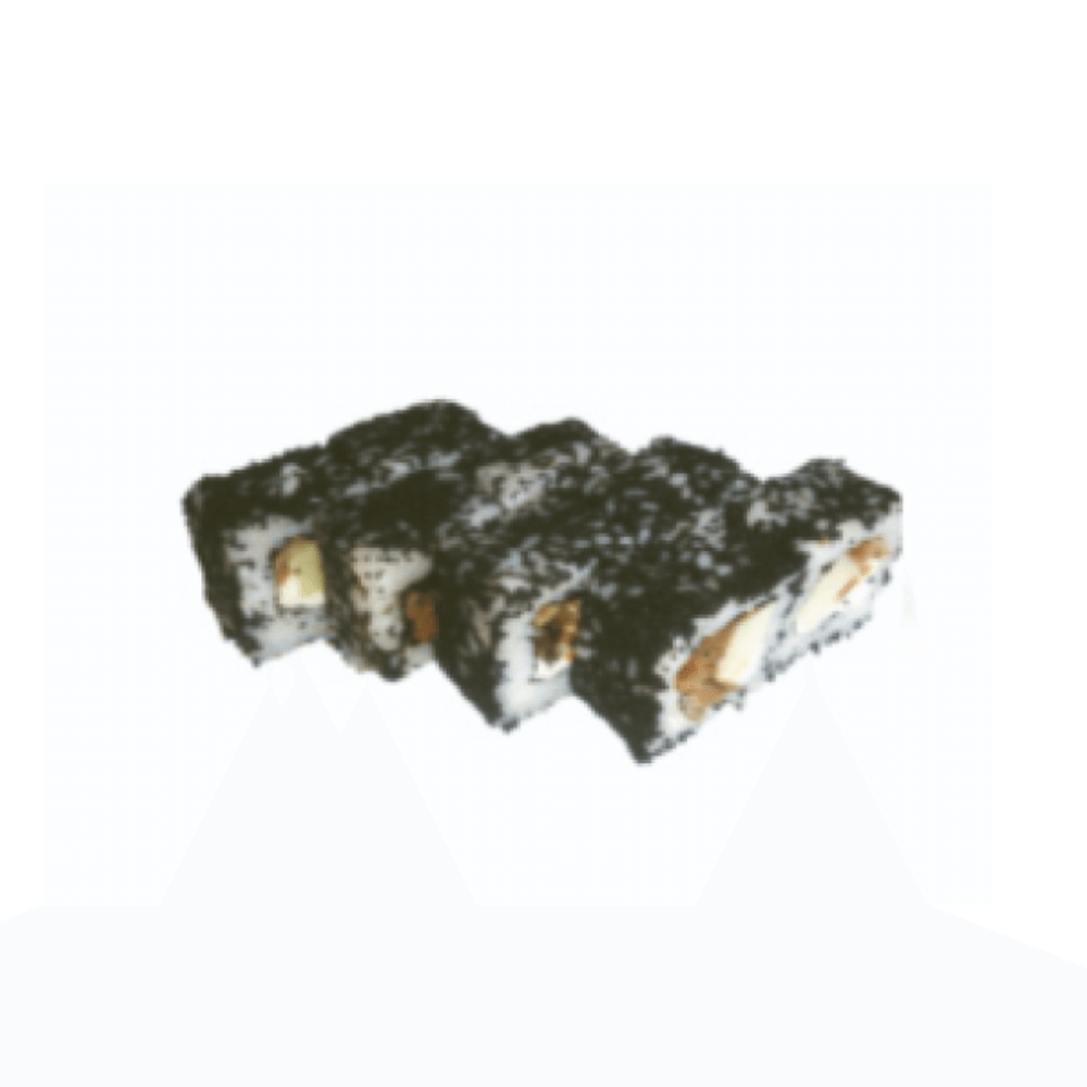 Рис, нори, сыр, угорь, яблоко, чёрный кунжут.