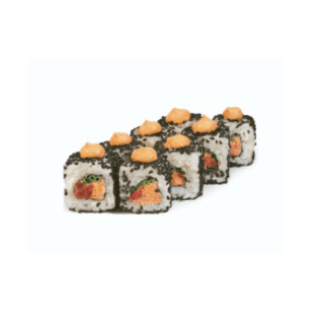 Рис, нори, сыр, лосось, болгарский перец, спайси соус, кунжут
