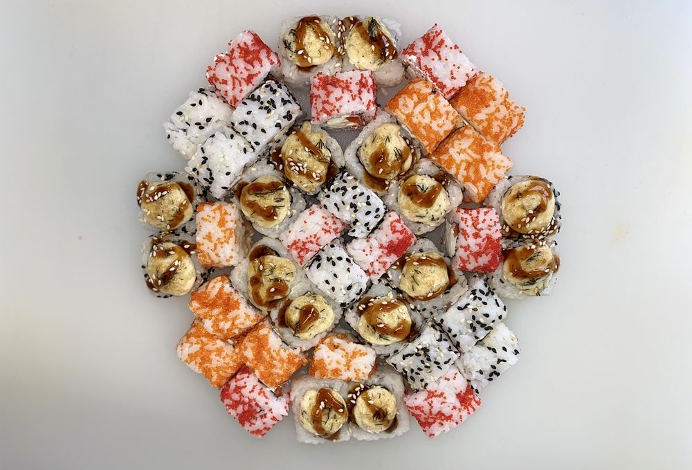 Роллы: Калифорния классик Бостон Хироши Адель Хайтек запечённый Порция: 40 шт