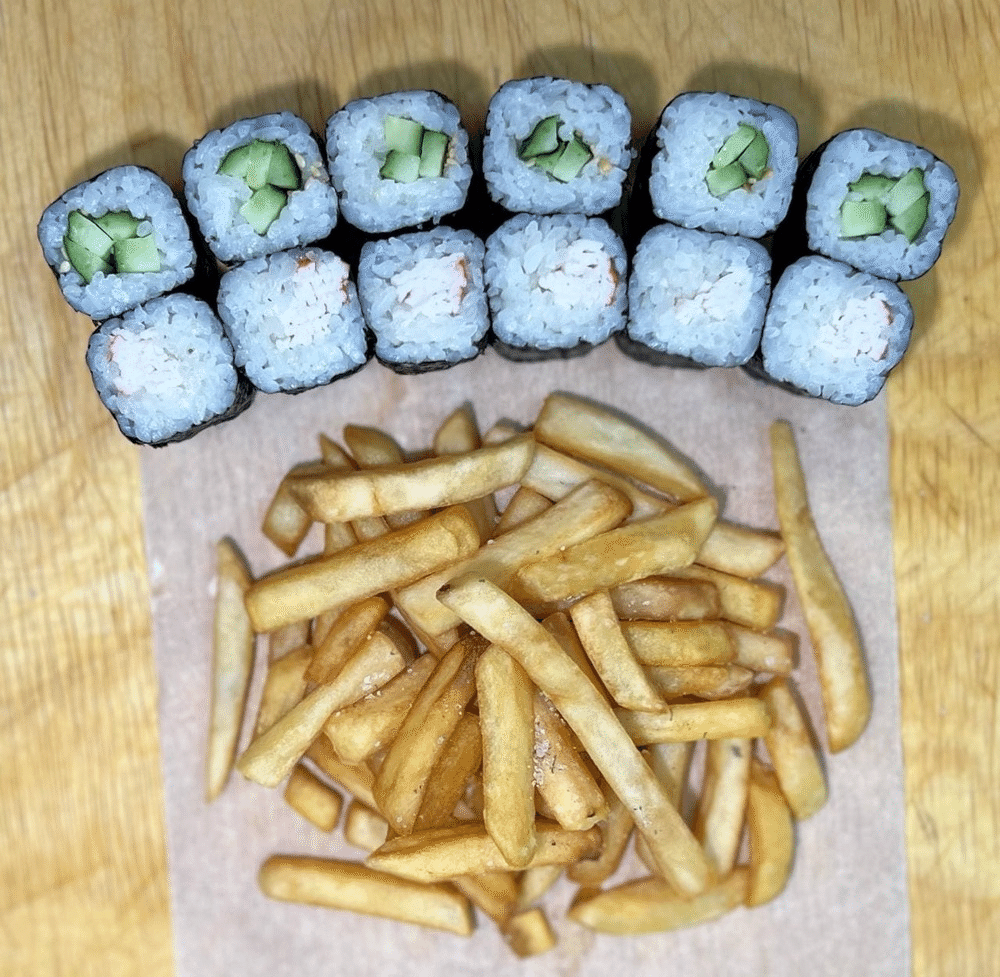 Классические роллы: - Ролл «Огурец» - Ролл «Краб» Гарнир: - картофель фри