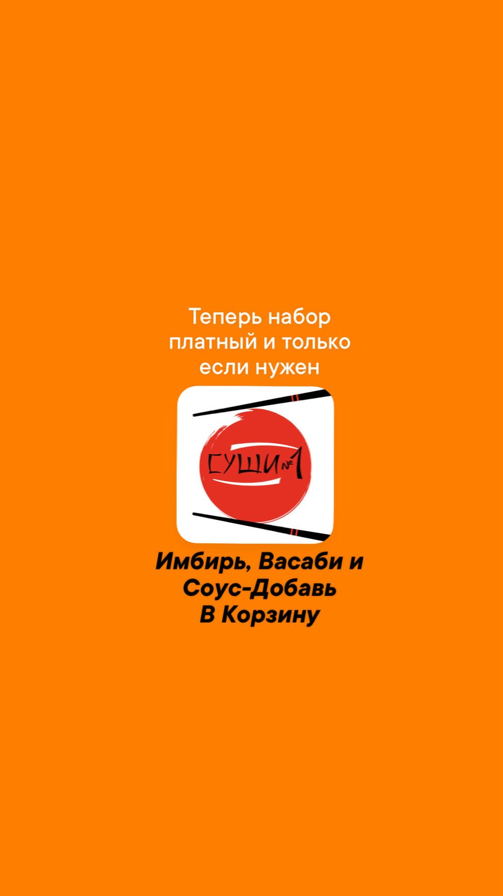 В комплекте вы получаете: Соевый соус- до 3 штук, Имбирь-1 порцию, Васаби-1 порцию, Палочки-до 3 пар. По запросу.