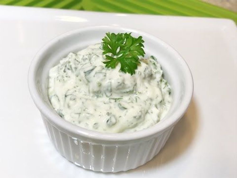 Сметанный соус,укроп,чеснок,вкусная соль. Добавка к мантам