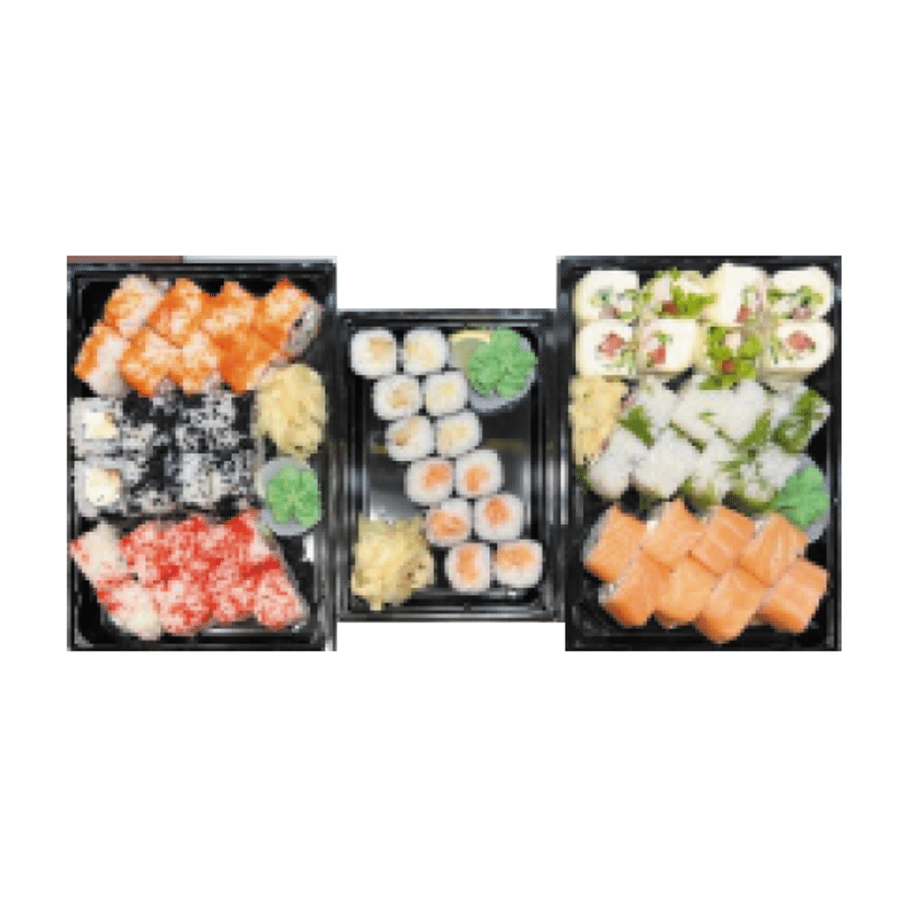 Роллы: Испания Кипр Нияма Калифорния классик Эсколар Амазонка Лосось Эгоист Порция: 60 шт.