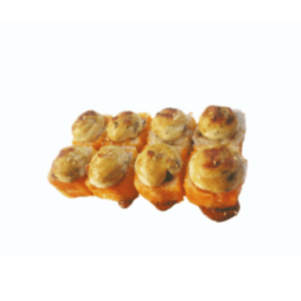 Рис, нори, сыр, лосось, огурец, спайси соус, икра масаго, креветка, белый соус, кунжут