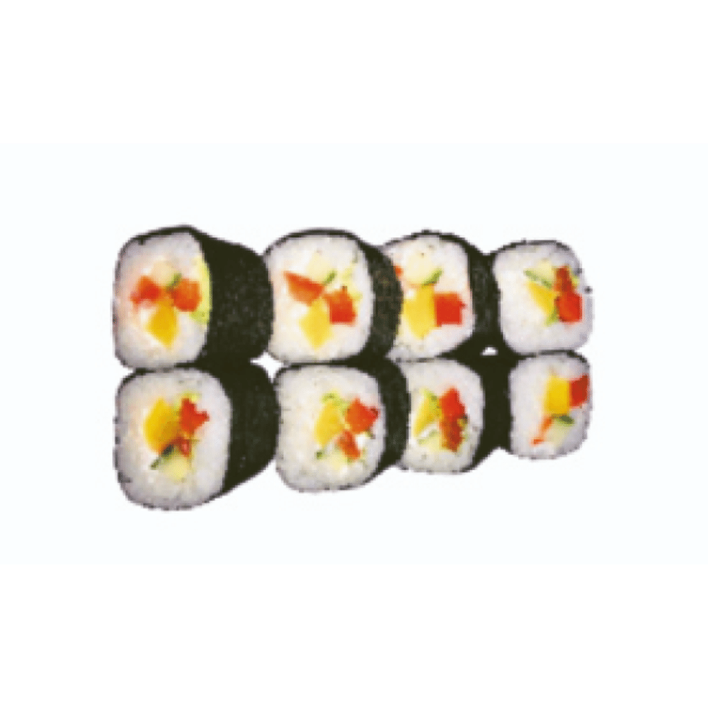 Рис, нори, майонез, такуан, огурец, помидор, болгарский перец, лист салата