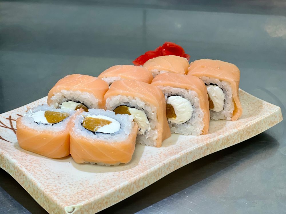 Рис, нори, сыр, мандарин, лосось